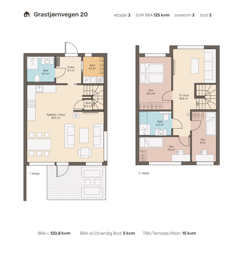 Uansett hvilken bolig man velger, får man et hus med smarte oppbevaringsmuligheter, ekstra luftig takhøyde i andre etasje, tre soverom og separat vaskerom.