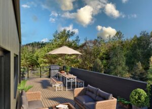Boligen er på hele 216 kvm total BRA, og har til sammen nesten 70 kvm med terrasser. Her skal late morgener og sene sommerkvelder kunne nytes, med sol fra morgen til kveld.